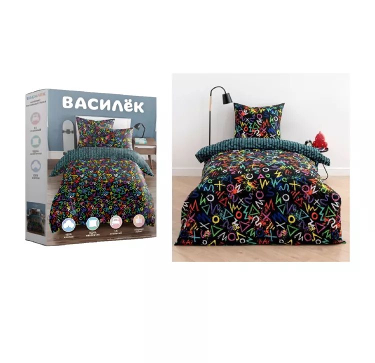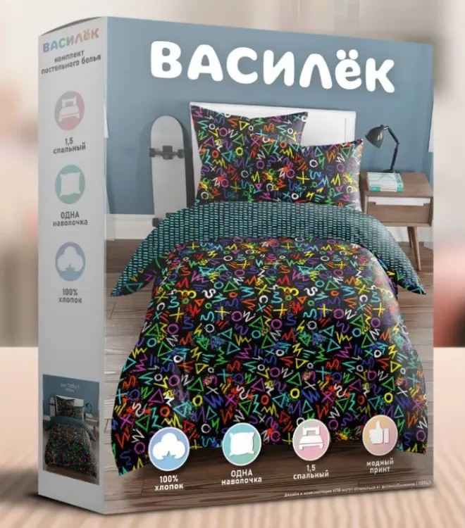 "Василек" Комплект постельного белья "Граффити" 1,5сп, 70х70см, поплин