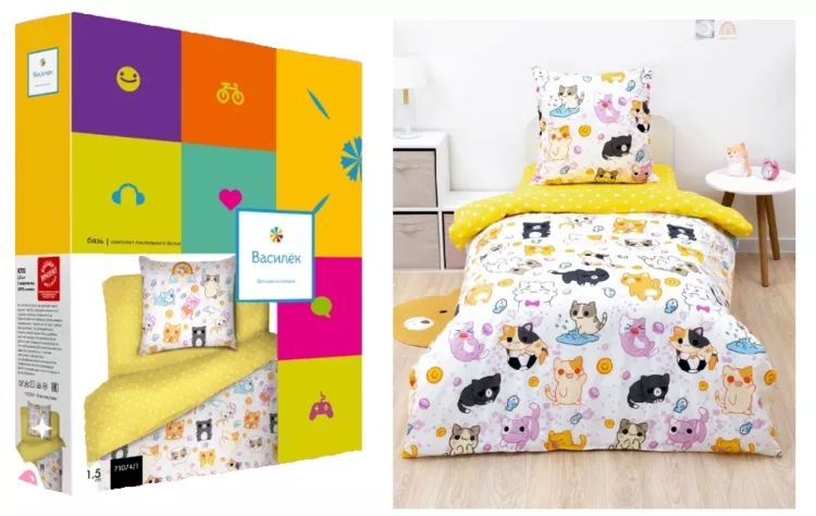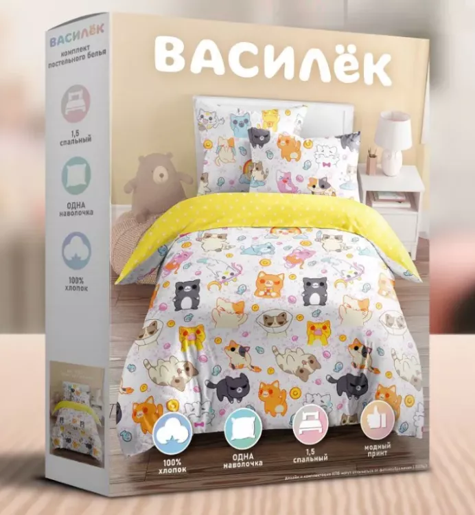 "Василек" Комплект постельного белья "Котики" 1,5сп, 70х70см, поплин