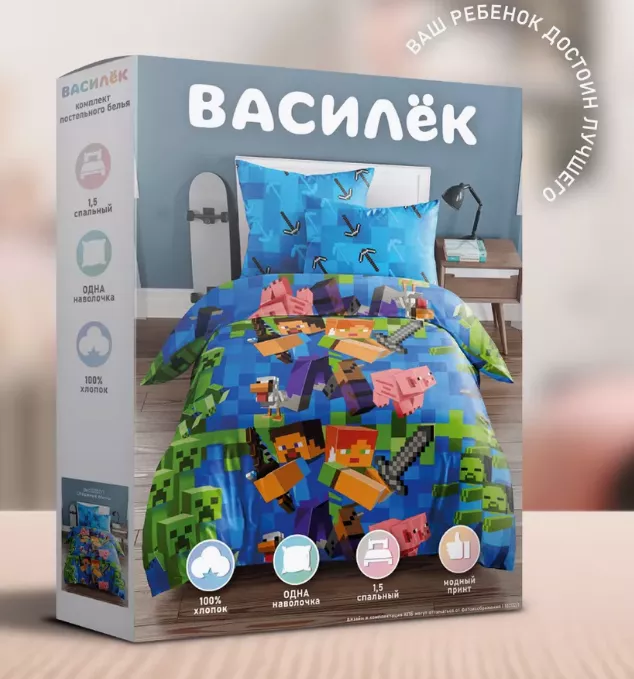 "Василек" Комплект постельного белья "Майнкрафт" 1,5сп, 70х70см, бязь