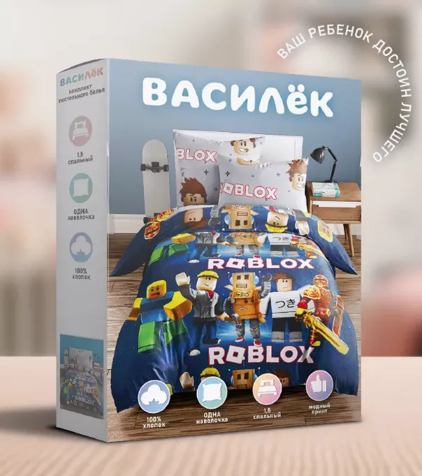 "Василек" Комплект постельного белья "Роблокс" 1,5сп, 70х70см, поплин