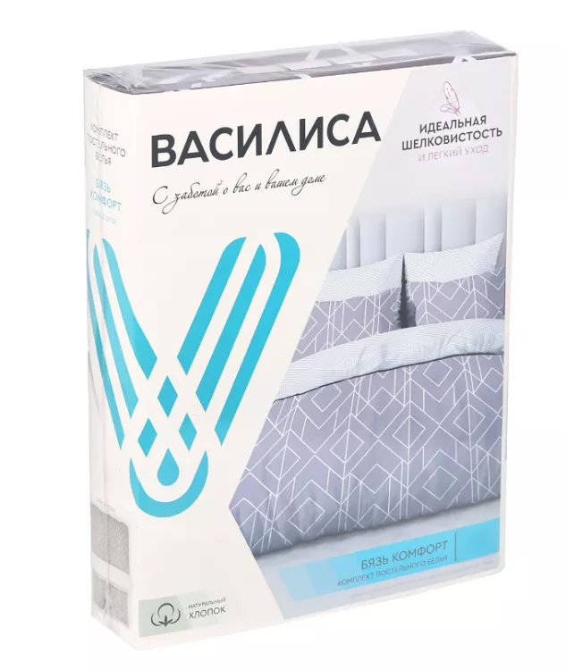 Материал: 100% хлопок, бязь. Состав: простыня 214*150 - 1шт, пододеяльник 215*145 - 1шт, наволочки 70*70 -2шт.