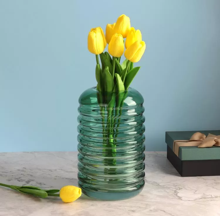 Великолепная эксклюзивная стеклянная ваза с витой текстурой отличный вариант для композиций с разнообразными букетами. Современная и оригинальная, её прозрачное зеленое стекло привносит свежесть и изящество в интерьер любого помещения — будь то уютный дом...