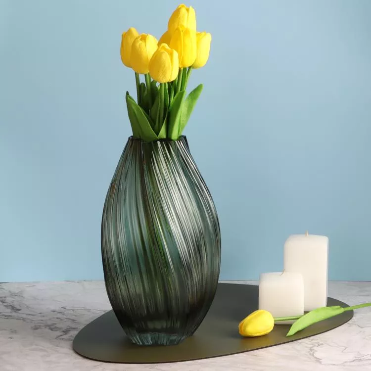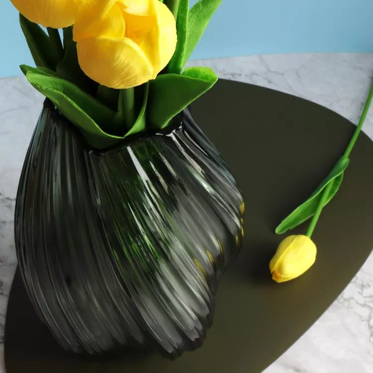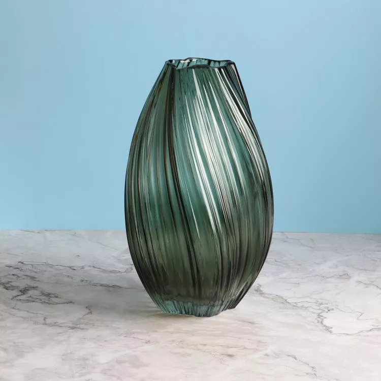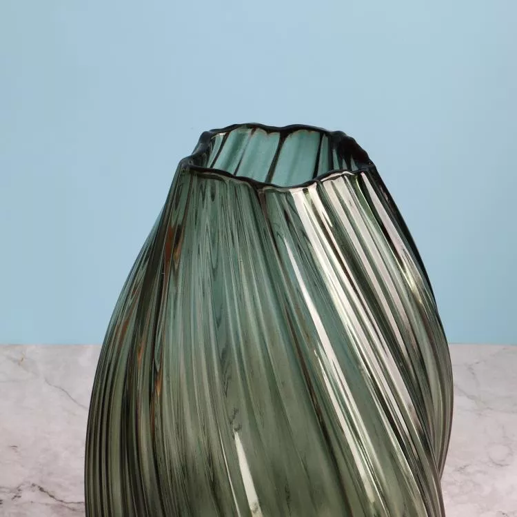 Эксклюзивная стеклянная ваза станет кульминацией вашего интерьера, будто витая карамель. Её прозрачные извивы захватывают взгляд и напоминают произведение искусства, созданное плавными движениями станка.