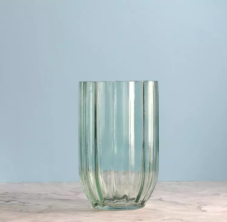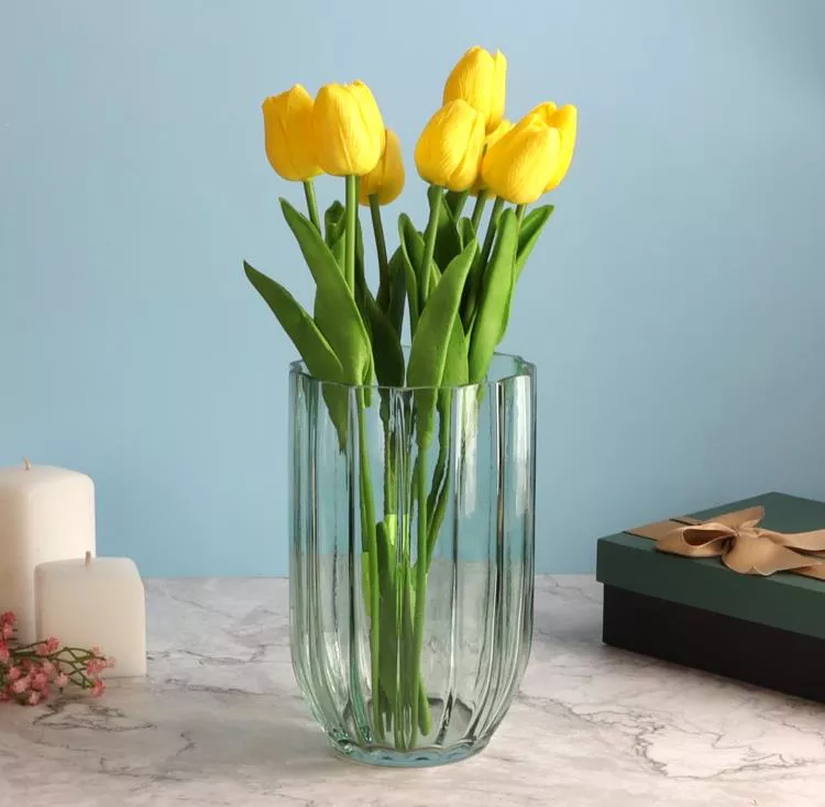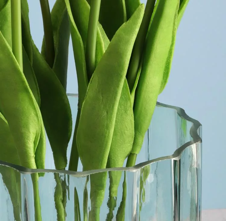 Оригинальная стеклянная ваза с изысканным оттенком зеленого напоминает бутон тюльпана, готового раскрыться. Этот универсальный элемент декора органично вольется в атмосферу вашего дома или офиса и станет изящным акцентом в сервировке любого заведения.