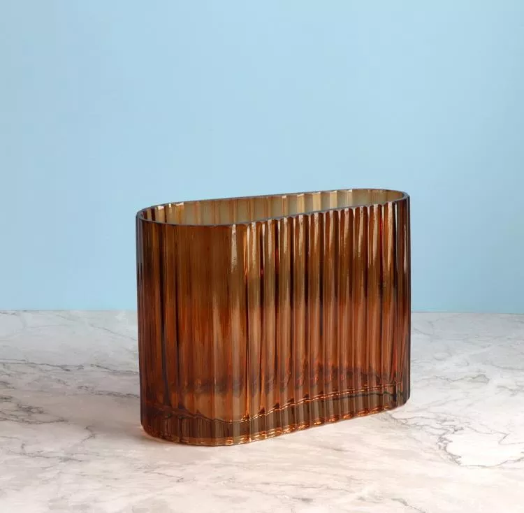 Откройте для себя неповторимый шарм оригинальной стеклянной вазы, окрашенной в тёплые коричневые тона кардамона. Эта прозрачная красавица с необычной формой - настоящее украшение для дома, офиса или любого заведения.