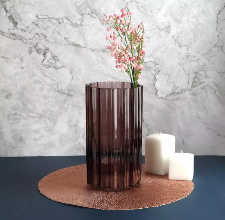 Шикарная стеклянная ваза бордового цвета станет изысканным украшением для любого пространства. Этот уникальный аксессуар для дома, офиса или заведений обладает потрясающей игрой света, напоминая мягкий поток воды, плавно скользящий по стеклу и искрящийся...