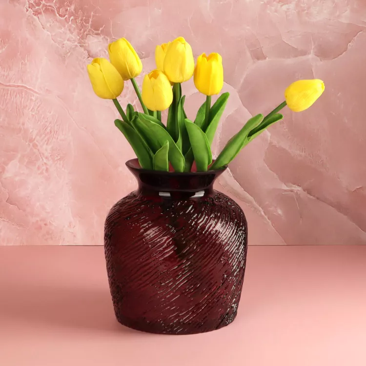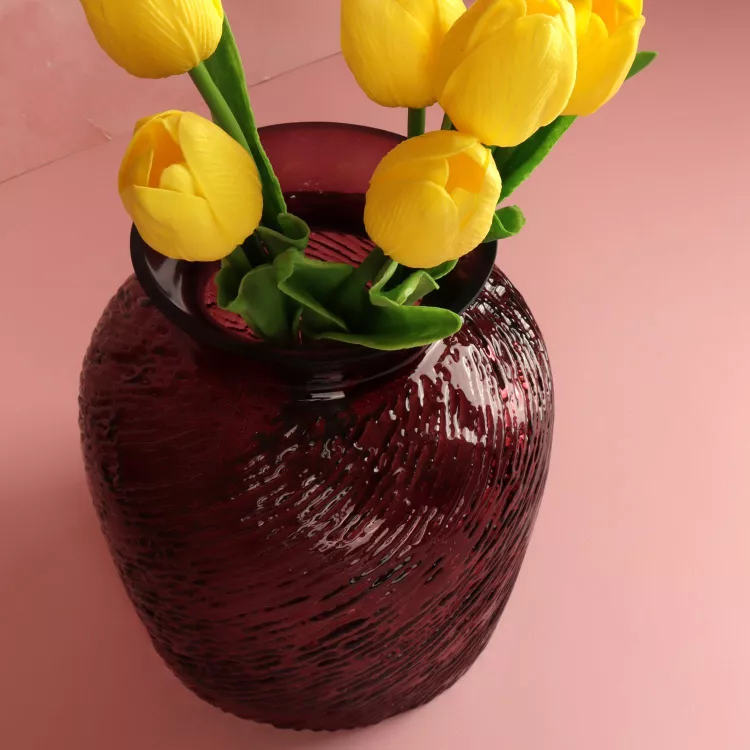 Эта стеклянная ваза создана для тех, кто ценит уникальные предметы интерьера. Её прозрачная бордовая гамма и рельефные стенки, напоминающие древнегреческую амфору, привносят в пространство оттенки роскоши и аристократизма. Это не просто ваза, это декорати...
