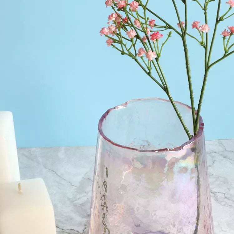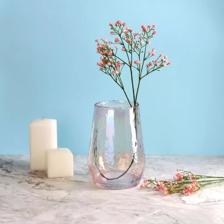 Эта роскошная стеклянная ваза, отделанная переливами перламутра, станет эксклюзивным украшением любого помещения. Она одинаково гармонично смотрится как в уютной домашней обстановке, так и в современном офисе или элегантном заведении. Её уникальный розовы...