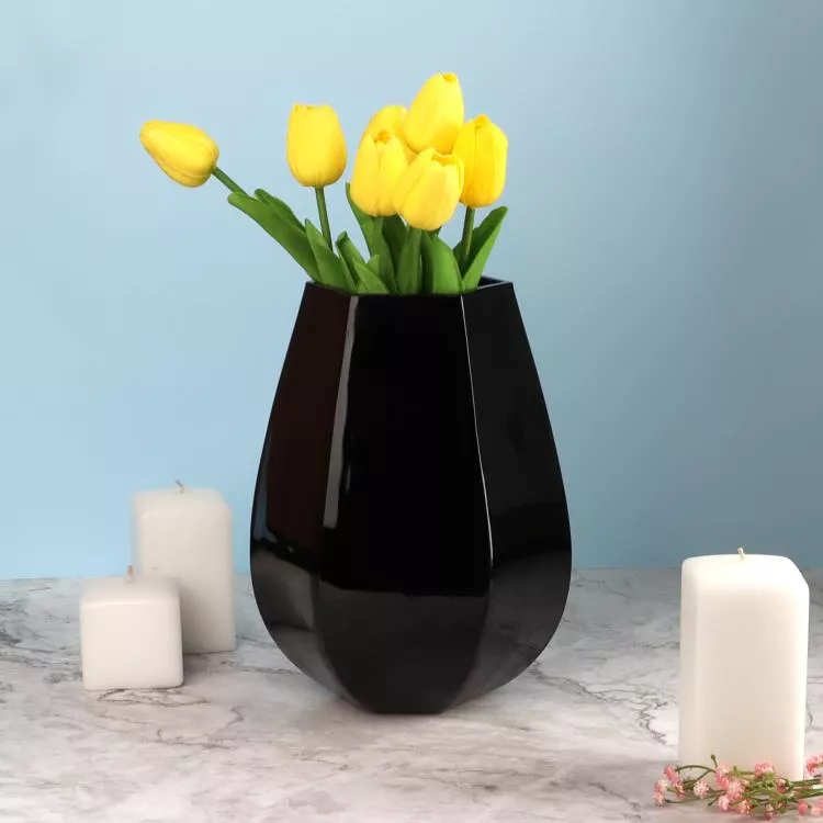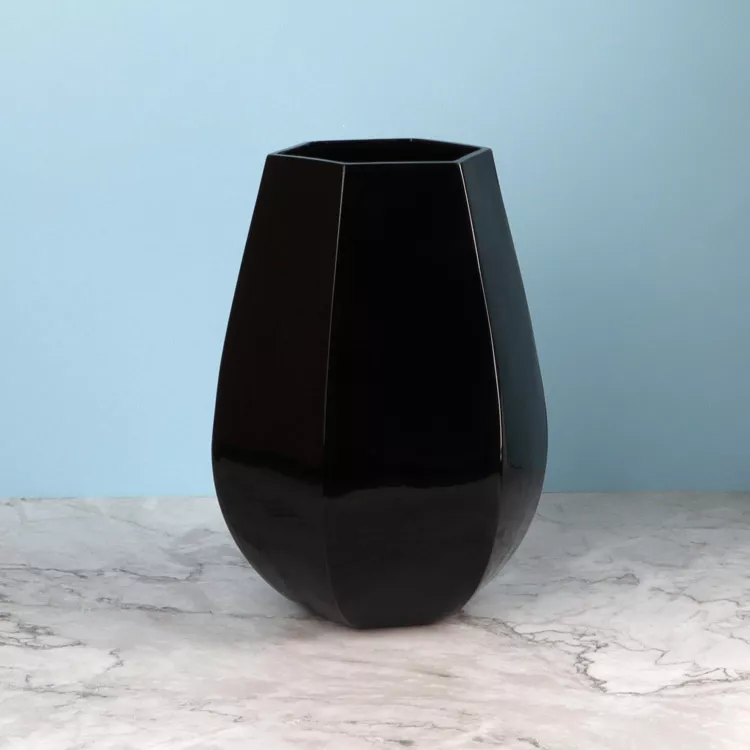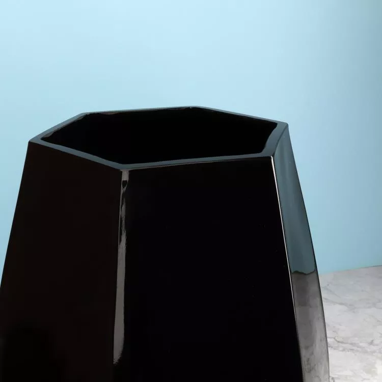Уникальная стеклянная ваза в черном цвете — это воплощение элегантности и универсальности. Сила черного минерала, вдохновившего дизайн, превращает вазу в настоящий объект искусства, который станет центром притяжения в интерьере вашего дома или офиса.
