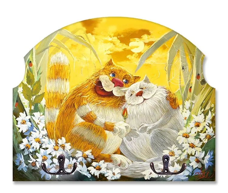 Вешалка-ключница "Счастливые коты" 25х21см