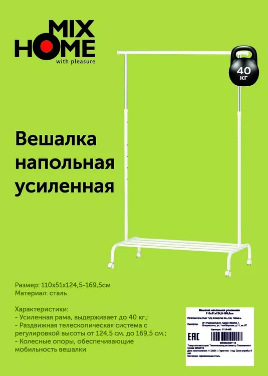 Вешалка напольная усиленная 110х51х124,5-169,5см