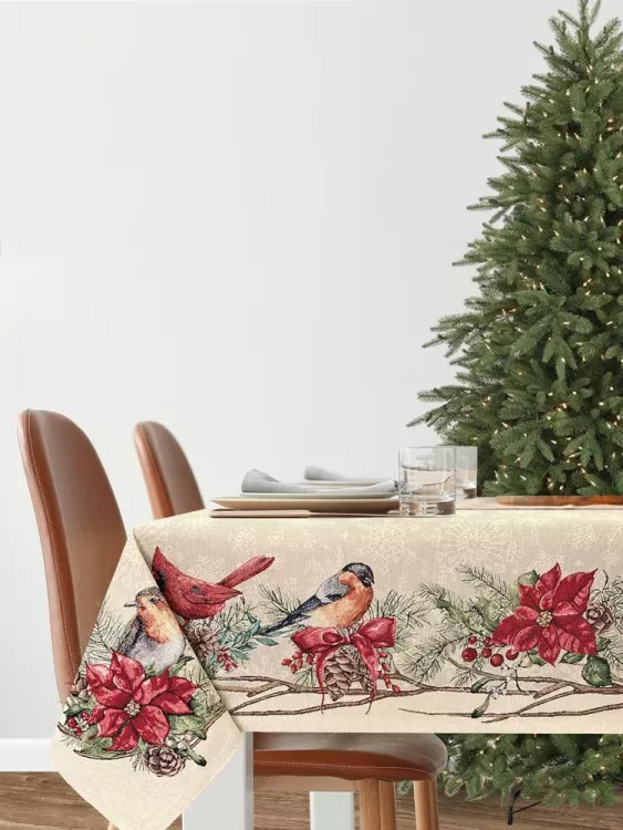 "Лесные друзья у кормушки" Скатерть 140х240см, цв.серебро