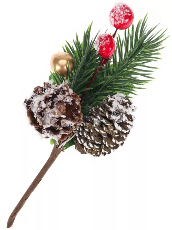 "Зимнее волшебство" Ветка декоративная "Ягоды и шишка" 27см