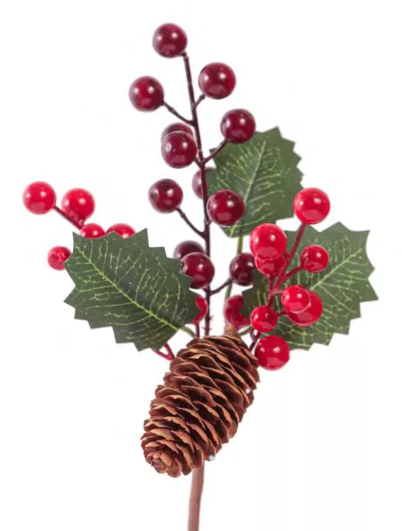 Ветка декоративная "Ягоды с сосновой шишкой" 26х15см
