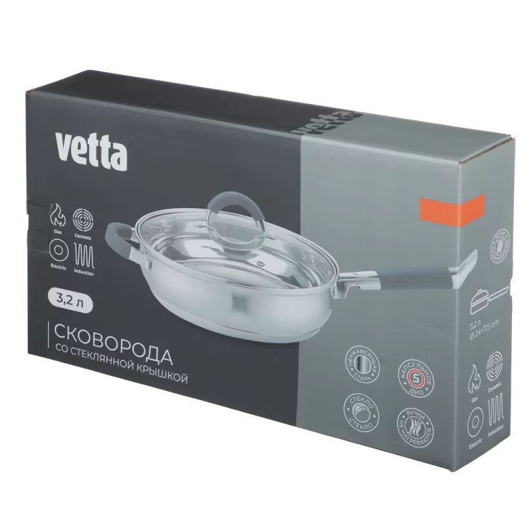 "VETTA" Вета" Сотейник с 2-я ручками 3,2л, 24см, с индукционным дном