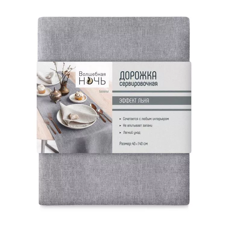 "Волшебная ночь" Дорожка на стол "Рогожка" 40х140см, цв.базальт 776592