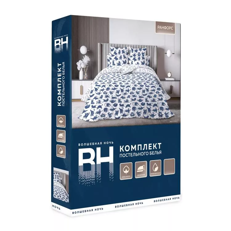 "Волшебная ночь" Комплект постельного белья "Yoga cat" евро, 70х70см ранфорс 8985/1+30010/1