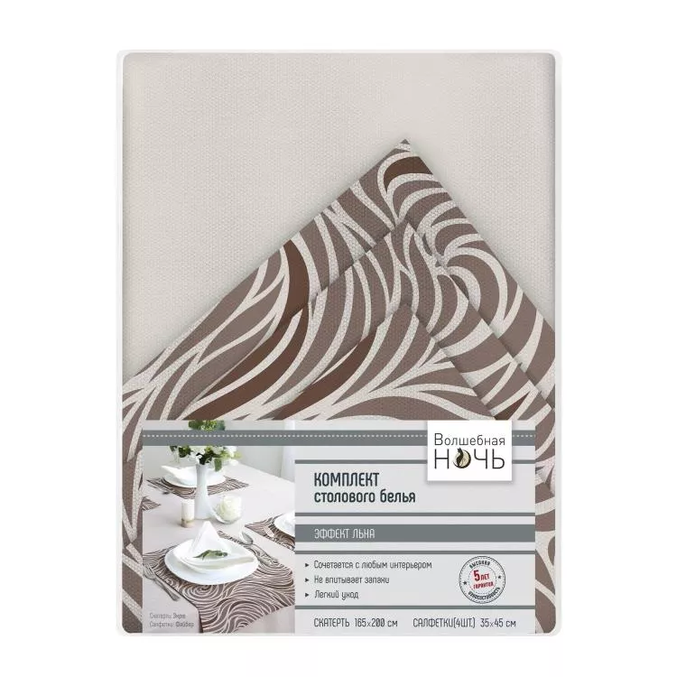"Волшебная Ночь" Комплект столовый "Файбер" скатерть 165х200см, салфетки 4 шт, цв.экрю