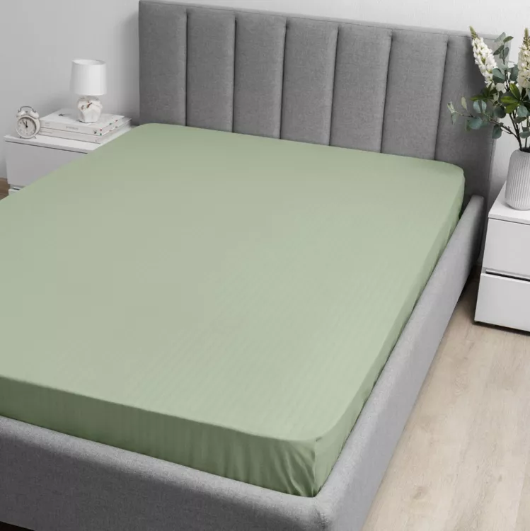"Волшебная ночь" Простыня на резинке "Smoke Green" 200х200х20см, страйп