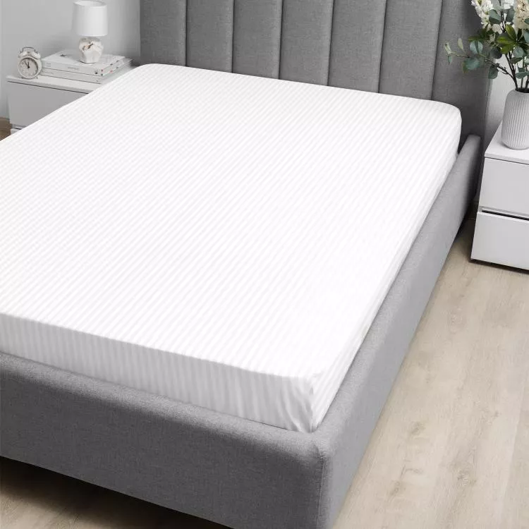 "Волшебная ночь" Простыня на резинке "Warm white" 140х200х20см, страйп