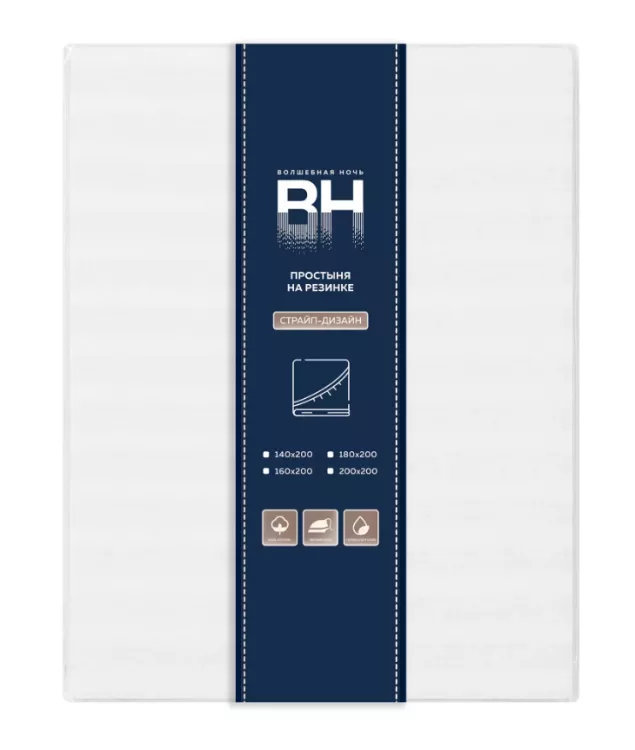 "Волшебная ночь" Простыня на резинке "Warm white" 160х200х20см, страйп