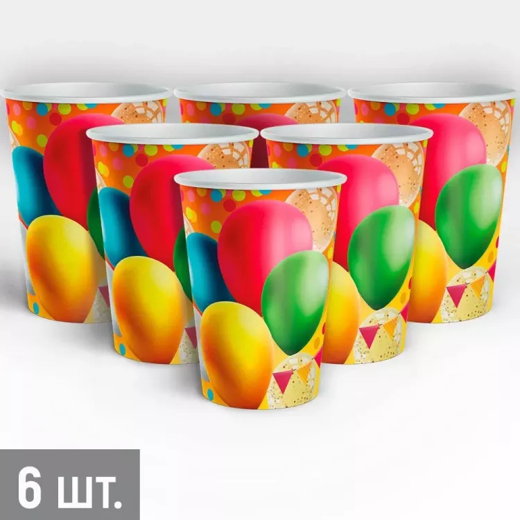 "Воздушные шары" Набор бум.стаканов 6шт. 250мл