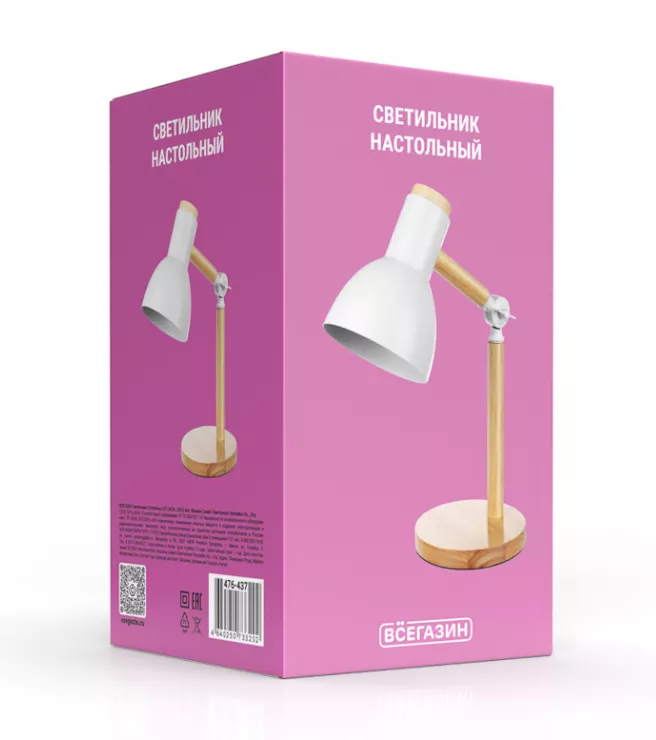"ВСЁГАЗИН" Лампа настольная "Стокгольм" E27 60Вт 230В, цв.белый