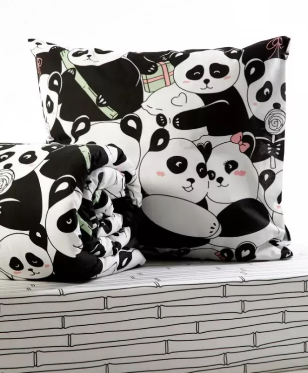 "WAKE me WAKE" Комплект постельного белья "Панды" 1,5сп, 50х70см, перкаль