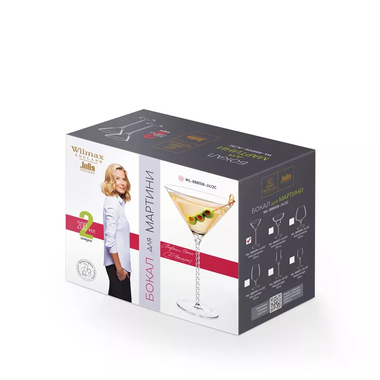 WILMAX JV Набор бокалов для мартини 2шт, 200мл, в п.у.