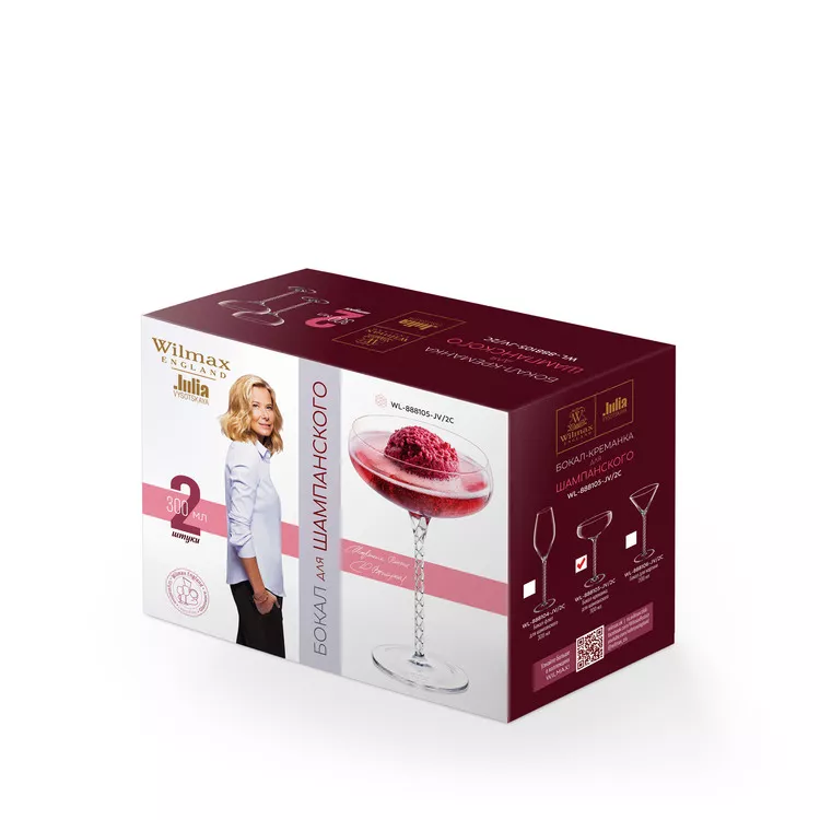 WILMAX JV Набор бокалов для шампанского (Coupe) 2шт, 300мл, в п.у.