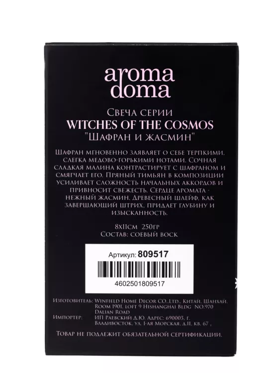 "Witches of the cosmos" Свеча "Шафран и жасмин" 8x11см