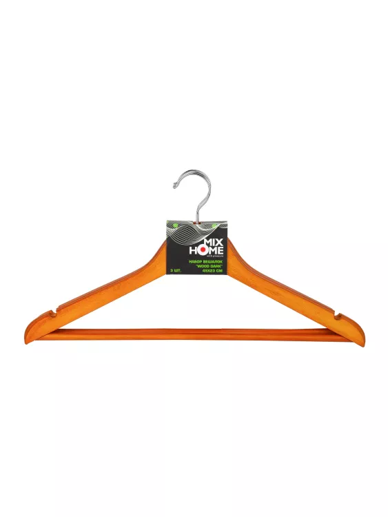 "Wood dark" Н-р вешалок деревянные с перекладиной, 3шт. 45х23см