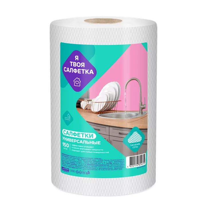 "Я твоя салфетка" Набор салфеток в рулоне, соты, 25х20см 150шт.
