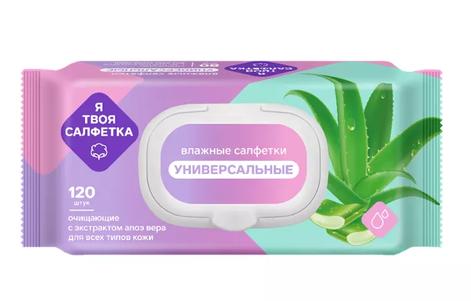 "Я твоя салфетка" Влажные салфетки очищающие с алоэ вера с защитным клапаном 120шт.
