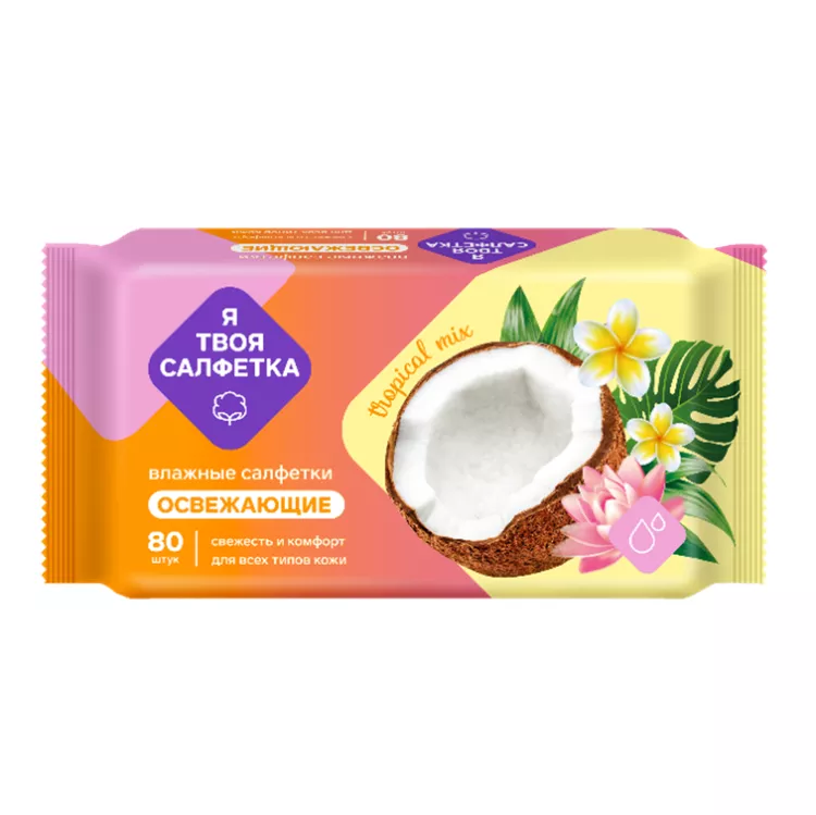 "Я твоя салфетка" Влажные салфетки "Tropical mix" освежающие 80шт.