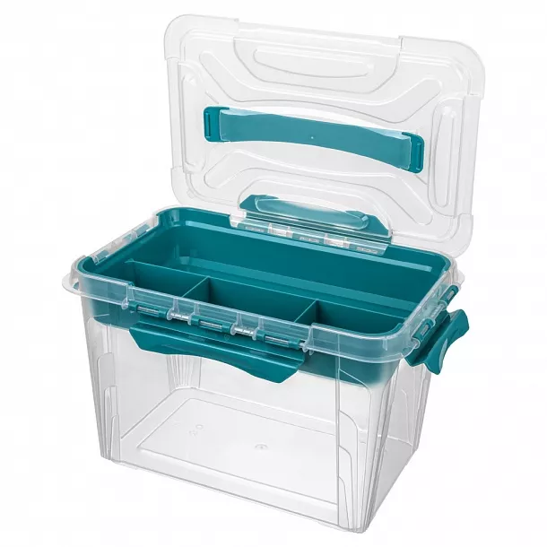Ящик для хранения "GRAND BOX" со вставкой 6,65л, 29х19х18см, цв.голубой