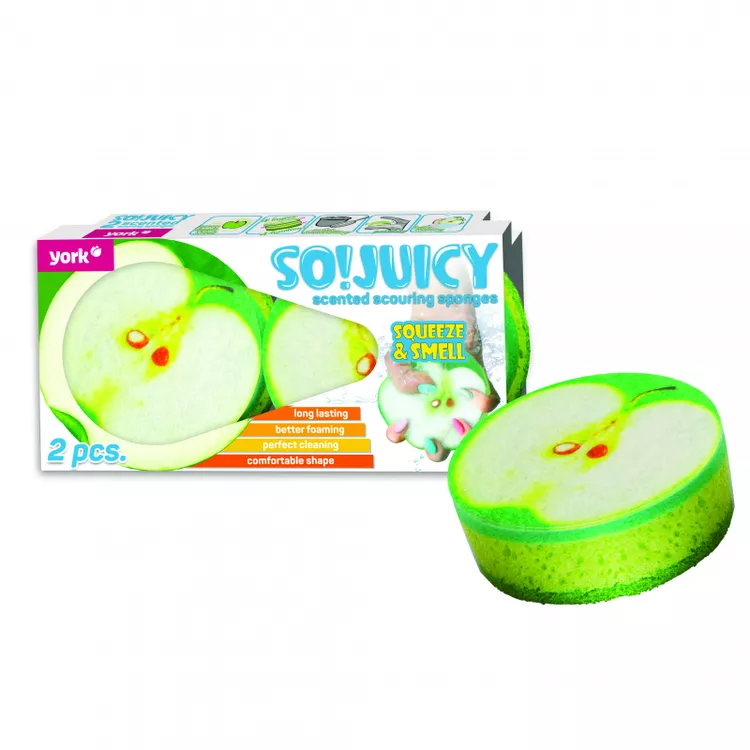 "YORK" Набор губок "Арома Чисто" 2шт, 9,5х9,5х3см, яблочный