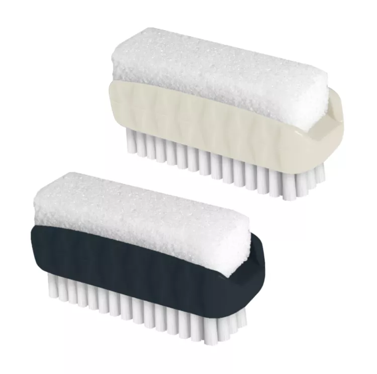 Компактная двусторонняя щетка для рук и ногтей. Имеет жесткую щетину и пемзу для деликатного снятия огрубевшей кожи. Оснащена удобной ручкой с рельефной поверхностью для упора. Размеры щетки: 4х8х3см.