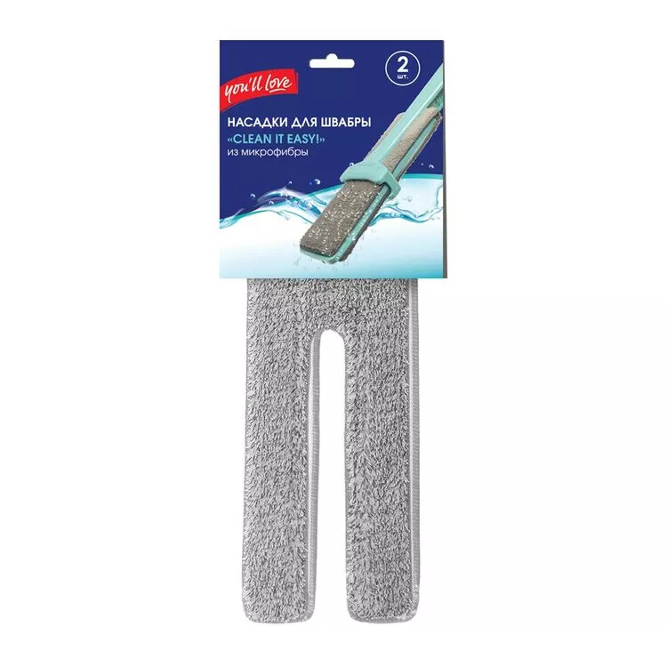 "You'll love"CLEAN IT EASY" Насадка 2-х сторонняя для швабры из микрофибры 38х11см