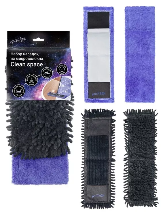 "You'll love"CLEAN SPACE" Набор насадок для швабры из микрофибры 2шт, 43х13,5-41х12,5см