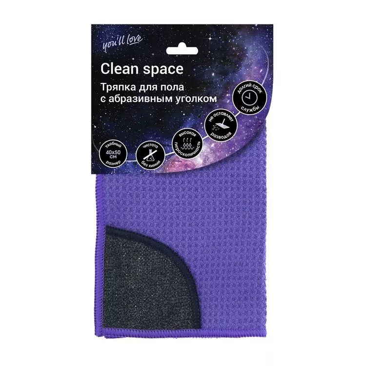 "You'll love"CLEAN SPACE" Тряпка для пола из микрофибры 50х50см, цв.фиолетовый