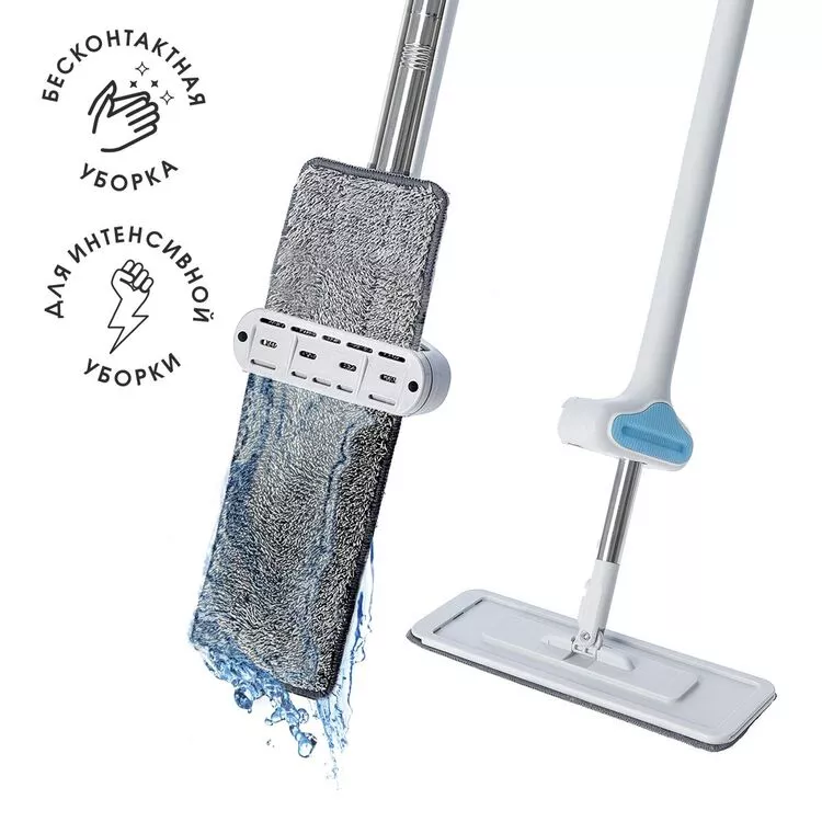 "You'll love"IT'S HAPPY DAY" Швабра с отжимом и насадкой из микрофибры 32,5х136см