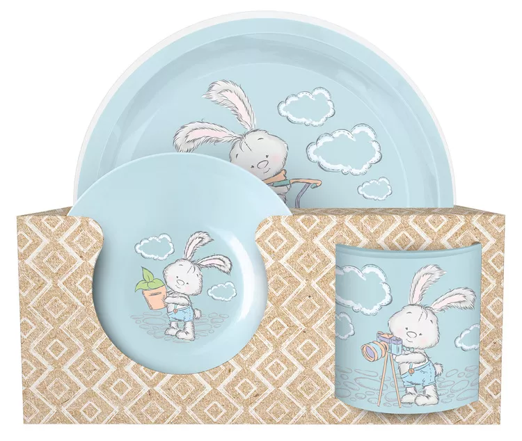 "Зайчата" Набор посуды 3пр., цв.светло-голубой