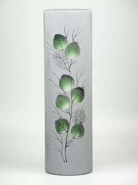 "Зеленые листья" Ваза-цилиндр 50см, цв.белый