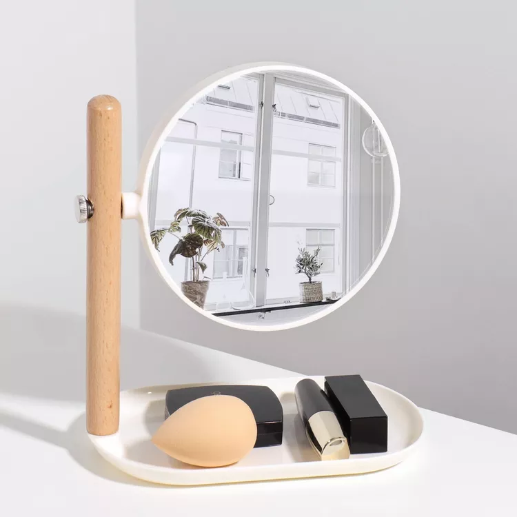 Зеркало настольное с подставкой для хранения 22х14,5х22см, цв.бежевый