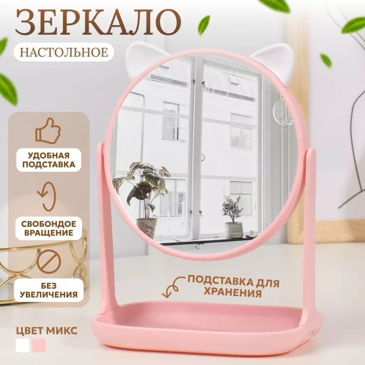 Зеркало настольное с подставкой для хранения d=14.5см, цв.розовый