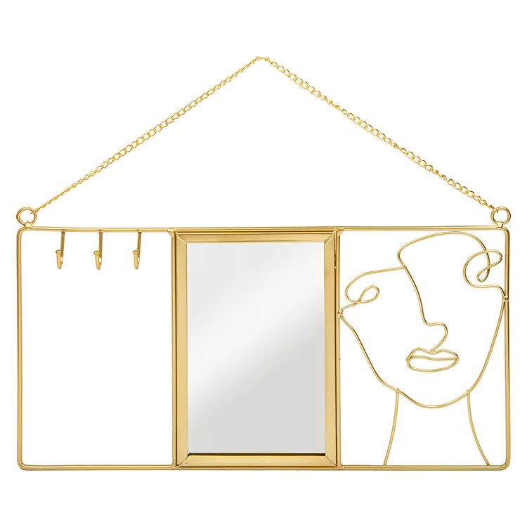 Зеркало подвесное с держателем для украшений 40х20х3см, цв.золото