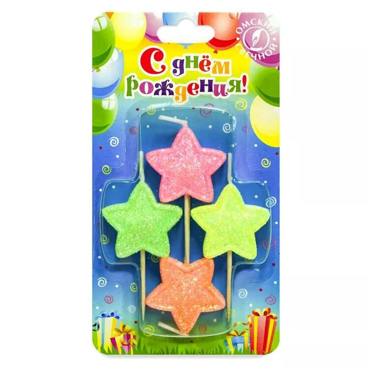 "Звездочка" Свечи для торта на шпажке "Ассорти" 4шт.