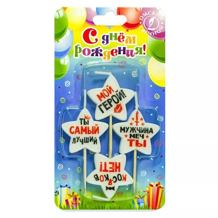 "Звездочка" Свечи для торта на шпажке "Мой герой" 4шт.