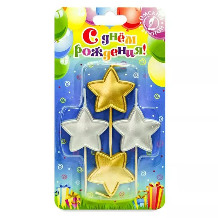 "Звездочка" Свечи для торта на шпажке "Золото&Серебро" 4шт.